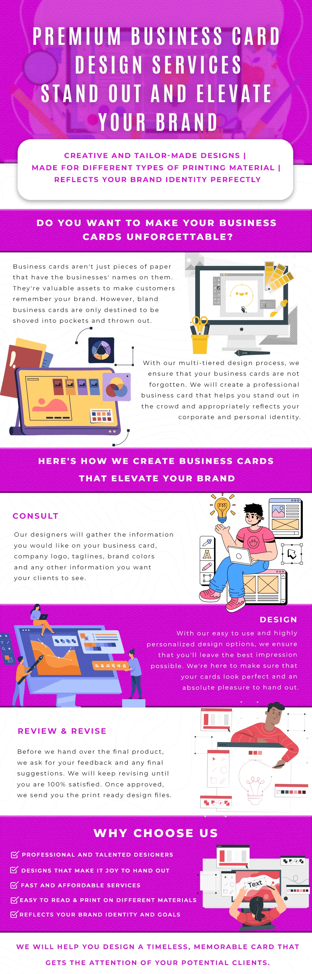 After you pay for this service and complete the onboarding document, we start designing your new business card. All design files are sent to you for your approval via email before zipping them up and sending you the RAWs. If you require any changes during our approval process, we can take care of them immediately and send you the revised copies. Your PM (Project Manager) will work with you to get approval. Once approved, we'll send your new business cards printed and shipped to you or your client's door.