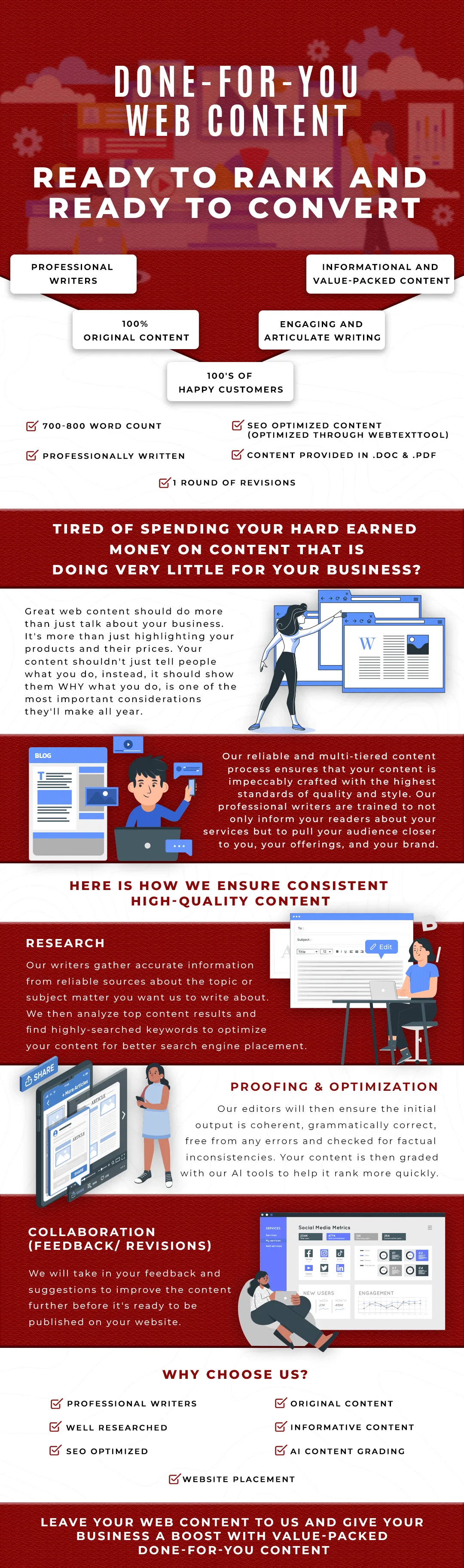 So you're building a new website for a client and need help creating services pages, FAQs, about us information, or anything that's NOT a blog. Then this service is for you! Our SEO-optimized content will help your visitors stay engaged and keep search engines happy.